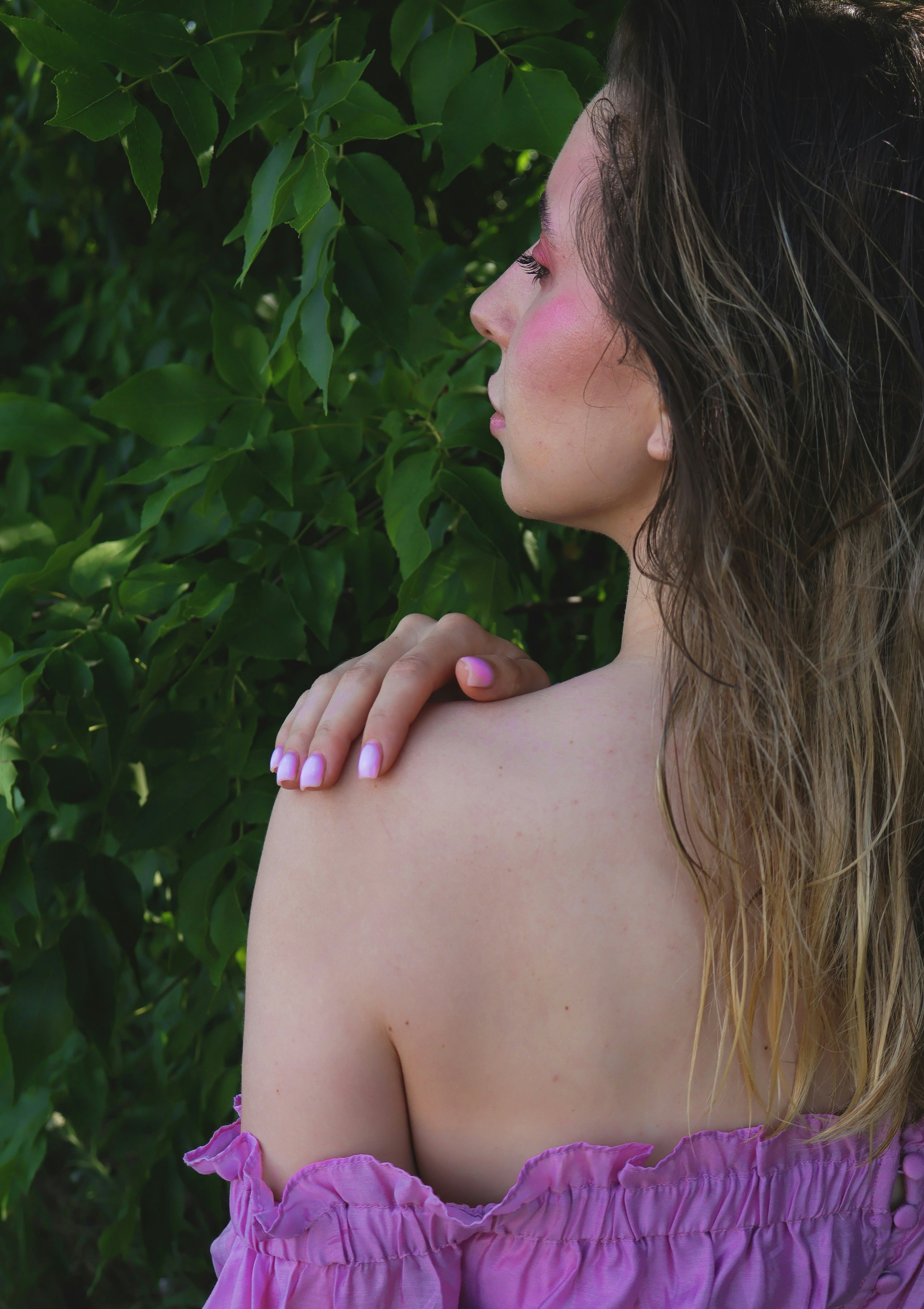 3D Cherry Pink French Tip Press-on Nail Short Square